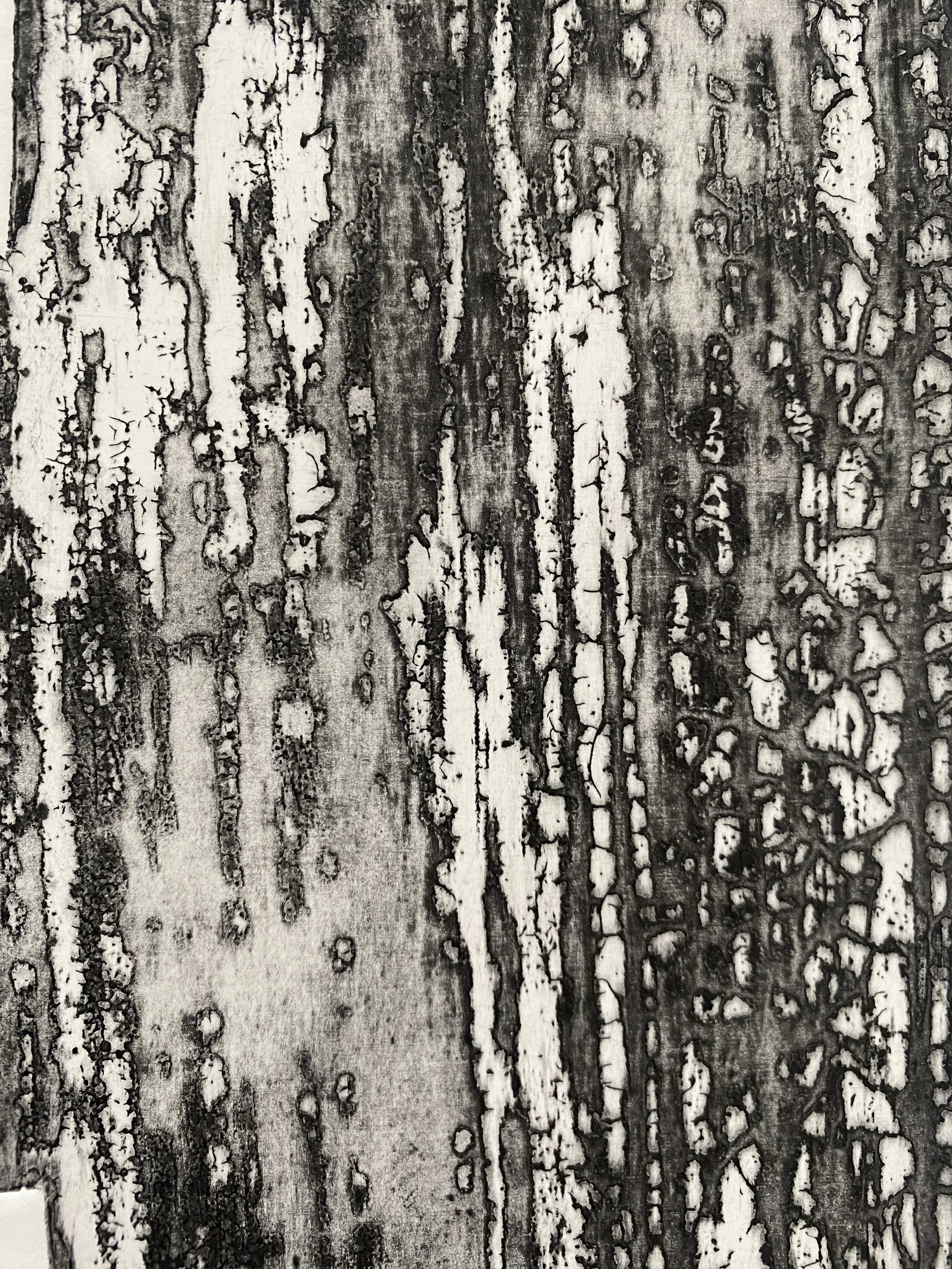 Allegory of History (Palestine, 1948), 2025. Wood, ink, archival photographs on silk. Ruskin School of Art, University of Oxford, MFA Degree Show (Photo by Ian Wallman).